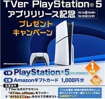 X (Twitter)キャンペーンフォロー&引用RTで合計101名に『Amazonギフト券 1000円分』などが当たる!2025年10月【TVer・X(Twitter)キャンペーン】 民放公式テレビ配信サービスの【TVer】の公式X (Twitter)アカウントで「TVer PlayStation5 アプリリリース記念 プレゼントキャンペーン」が開始しています。 2025年10月20日(月)までのキャンペーン期間内...2025/10/15 [6:50]X (Twitter)キャンペーンプレゼント・懸賞初回のみ応募可能大量当選(100名以上)
