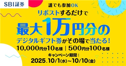 ②以下のURLから抽選https://t.co/xxaiFCEMGE… pic.twitter.com/5QfPuQ9ri6— SBI証券 (@SBISEC) October 1, 2025