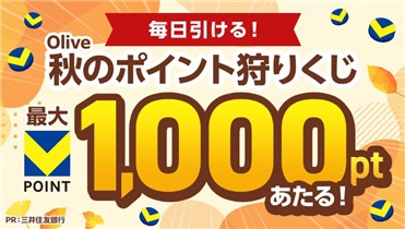 共通ポイントサービスのVポイントの総合サイト【Vサイト】の特設ページで会員を対象にした「Olive 秋のポイント狩りくじ」が開催中です。