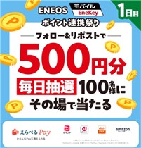 全国展開をするENEOSグループのスタンド(給油所)・販売店ブランドのENEOSの【ENEOS公式アプリ】公式X (Twitter)アカウントで「ポイント連携祭り フォロー&リポストキャンペーン」が開始しています。