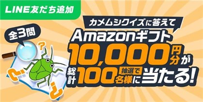 2025年10月31日(金)までのキャンペーン期間中に、特設ページにアクセスをして、公式アカウントを友だちに追加をしてクイズに解答をして、3問正解をしてバナーをタップして文章を送信すると後日抽選で100名に『Amazonギフト券 10,000円分』が当たる、プレゼントキャンペーンとなっています。