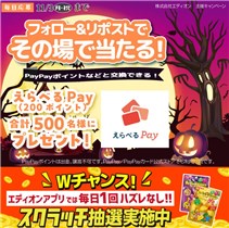 2025年11月3日(月)までのキャンペーン期間内に、公式Twitterアカウントをフォローして、期間中に毎日投稿される対象ポストをリポストして対象ポストのURLから応募をすると、その場で抽選で500名に『えらべるPay 200円分』が当たる、プレゼントキャンペーンとなっています。