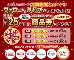 2025年10月31日(金)までのキャンペーン期間中に、しまむら公式Twitterアカウントをフォローした上で、期間中に毎日投稿される対象ポストをリポストして、キャンペーン対象ポストの画像のURLから応募をすると、その場で抽選で合計155名に『しまむらグループ共通商品券 1,000円分 ~ 10,000円分』が当たる、プレゼントキャンペーンとなっています。
