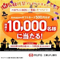3大メガバンクの1つの【三菱UFJ銀行】公式X (Twitter)アカウントで「ハロウィンBOXから特典を見つけよう!秋の収穫祭プレゼントキャンペーン」が開始しています。