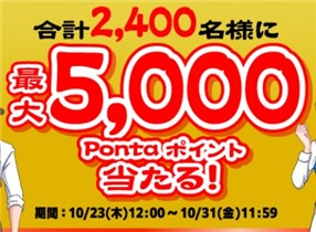 ■キャンペーン概要キャンペーン期間中、Ponta公式Xアカウント「@Ponta」をフォローして、該当ポストをリポストして応募すると、抽選で合計2,400名様に最大5,000Pontaポイントをプレゼントいたします。※10月23日(木)から10月30日(木)8日間、毎日Ponta公式X「@Ponta」よりキャンペーン対象...
