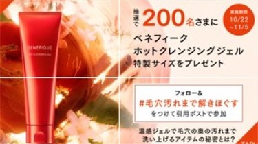2025年11月5日(水)までのキャンペーン期間中に、公式アカウントをフォローした上で、キャンペーン期間中に投稿される対象ポストにハッシュタグ【#毛穴汚れまで解きほぐす】を付けて引用ポストすると、後日抽選で200名に『ベネフィーク ホットクレンジングジェル 特製サイズ』当たる、プレゼントキャンペーンとなっています。