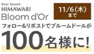 2025年11月6日(木)までのキャンペーン期間内に、公式アカウントをフォローして、キャンペーン対象ポストをリポストをすると、後日抽選で100名に『ディアボーテ Himawari Bloom d’Orの現品3点』が当たる、プレゼントキャンペーンとなっています。