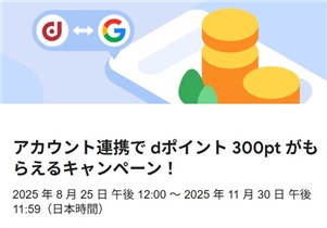 (JP) アカウント連携で dポイント 300pt プレゼントキャンペーン