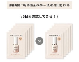 2025年11月30日(日)までのキャンペーン期間内に、Beauty Key会員 (旧:資生堂ワタシプラス会員)でない人は無料会員登録をして、LINEアカウントと連携した上で応募をすると、後日抽選で6,000名に『マキアージュ エッセンスリキッド EX ファンデーション・日中用美容液』が当たる、サンプルプレゼントキャンペーンとなっています。