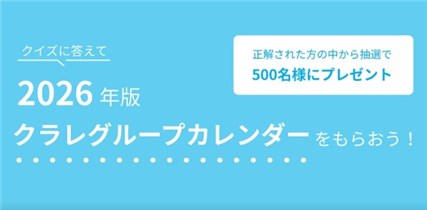 2025年11月30日(日)17時までのキャンペーン期間内に、公式サイトの特設ページにアクセスをして、クイズに回答して必要事項を記入して応募をすると、後日抽選で正解者の中から500名に『2025年版 クラレグループカレンダー -革新の100年、可能性の未来へ-』が当たる、プレゼントキャンペーンとなっています。