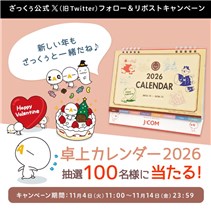 ケーブルテレビ・インターネット回線サービス提供会社のJ:COM (ジュピターテレコム)のキャラクターの【ざっくぅ】公式X (Twitter)アカウントで「2026年カレンダープレゼントキャンペーン」が実施中です。