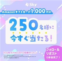 ソフトウェアやシステムの開発をしている【Sky株式会社 キャリア採用】の公式X (Twitter)アカウントで「Skyキャリア採用 今すぐ当たる!キャンペーン」が開始しています。