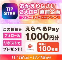 - TIPSTAR(ティップスター)公式 (@TIPSTAR_JP) をフォローする。