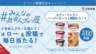 保険会社の【日本生命】公式X (Twitter)アカウントで「みんなの社会人ブルー展 開催記念キャンペーン」が開始しています。