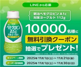 サンドラッグ LINEから応募!明治ヘモグロビン A1c 対策ヨーグルト 112g プレゼントキャンペーン 詳細