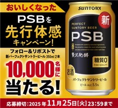 飲料などの販売で有名な【サントリー】の公式X (Twitter)アカウントで「おいしくなったPSBを先行体感キャンペーン」が開始しています。