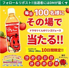 2025年11月28日(金)までの期間中に、公式アカウントをフォローして、キャンペーン期間中に毎日投稿される対象ポストをリポストして、対象ポストのURLから応募をすると、その場で抽選で1,000名に『ドラモリくんリンゴジュース 無料引換券』がその場で当たる、プレゼントキャンペーンとなっています。