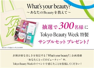 2025年11月25日(火)までのキャンペーン期間中に、公式X (Twitter)アカウントをフォローして、キャンペーン対象ポストにハッシュタグ【#TokyoBeautyWeek #あなたにとってのビューティーを教えて】とあなたにとってのビューティを記入してリプライをすると、後日抽選で300名に『Tokyo Beauty Week特製アイテムサンプルセット(化粧品)』が当たる、プレゼントキャンペーンとなっています。