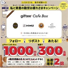 2025年11月27日(木)までのキャンペーン期間内に、公式アカウントをフォローした上で、期間中に投稿される対象ポストをリポストすると、後日抽選で300名に『giftee CafeBox 1,000円分』が当たる、プレゼントキャンペーンとなっています。