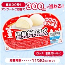 2025年11月30日(日)までのキャンペーン期間内に、LINE友だちに追加をした上でトーク画面の応募先からアンケートに回答をして応募をすると、その場で抽選で300名に『ロッテ雪見だいふく セブンイレブン無料引換券』が当たる、プレゼントキャンペーンとなっています。
