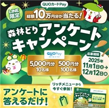 2025年12月12日(金)までのキャンペーン期間内に、LINE友だちに追加をした上で、LINEのトーク画面からアンケートに回答をして応募をすると、後日抽選で合計110名に『QUOカードPay 500円 or 5,000円分』が当たる、プレゼントキャンペーンとなっています。