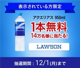 2025年12月1日(月)までの期間中に、CokeONアプリをインストールしていない人はインストールをして、ニュース一覧に表示されているバナーからキャンペーンページにアクセスをして抽選をすると、その場で抽選で140,000名に『アクエリアス 950ml ローソン無料引換券』が当たる、プレゼントキャンペーンとなっています。