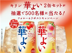冬限定アップル&ピーチスパークリング発売記念 キリン 華よい 2缶セットが当たる! フォロー&リポストキャンペーン 詳細