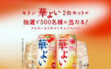 2025年12月8日(月)までの期間中に、公式アカウントをフォローした上で、期間中に毎日投稿される対象ポストをリポストすると、その場で抽選で500名に『キリン 華よい 350ml 2缶セット』が当たる、プレゼントキャンペーンとなっています。