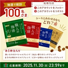 2025年11月30日(日)までのキャンペーン期間中に、公式アカウントをフォローして、キャンペーン対象ポストをリポストすると、後日抽選で100名に『職人の珈琲飲みくらべセット ワンドリップ4種各1杯分本』が当たる、プレゼントキャンペーンとなっています。