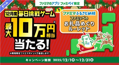 【ファミマのアプリ ファミペイ限定】1日1回挑戦できる!12月度 毎日挑戦ゲーム