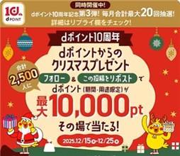 NTTドコモが運営する共通ポイントサービスのdポイントのポータルサイトの【dポイントクラブ】公式X (Twitter)アカウントで「dポイントからのクリスマスプレゼントキャンペーン」が開始しています。