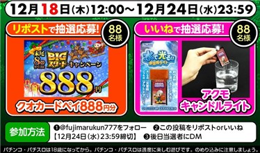 ③後日当選者にDM pic.twitter.com/0LhopgwvX3— 藤商事 (@fujimarukun777) December 18, 2025