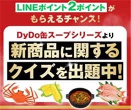 飲料メーカーの【ダイドードリンコ (DyDo)】の公式LINEアカウントで「LINEポイント2ポイントをクイズに答えてGETしよう!」が実施中です。