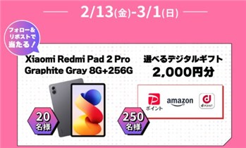 - Xiaomi androidタブレット × 20名様