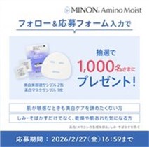 2026年2月27日(金)までのキャンペーン期間内に、公式アカウントをフォローして、キャンペーン対象ポストの画像のURLからアンケートに回答をすると、後日抽選で1,000名に『ミノン 美白美容液 + 美白マスクサンプル』が当たる、プレゼントキャンペーンとなっています。