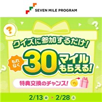全2問のクイズに参加すると、もれなく3⃣0⃣マイルがその場でもらえる!