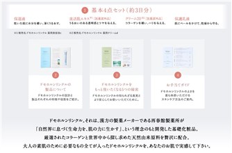 「ドモホルンリンクル」は、漢方の製薬会社「再春館製薬所」がつくる化粧品です。人が本来持つ力に着目し、今ある悩みに対処しながら、これからの悩みにも先回りケア。