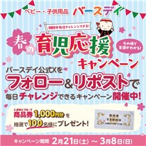 ベビー・子供用品専門チェーン店舗を全国展開している【バースデイ】の公式Xアカウントで「春の育児応援キャンペーン」が開始しています。