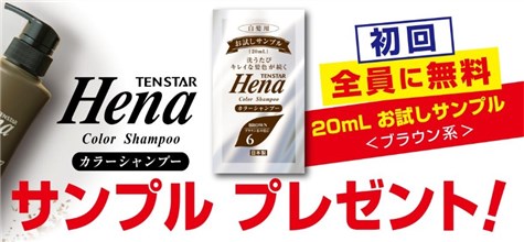 サンプル請求期間が終了するまでに、公式サイトの特設ページにアクセスをして、応募フォームから必要事項を記入して応募をすると、もれなく全員に『テンスターヘナ カラートリートメント 3種から1つ 20gお試しサンプル』を配布する、サンプルプレゼントキャンペーンとなっています。
