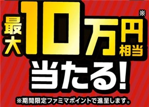 期間中、1日1回ゲームに挑戦でき、当たりが出たら、最大10万円相当のファミマポイントがもらえる!ファミマのアプリのチャレンジから参加してください。