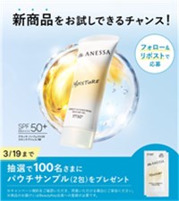 2026年3月19日(木)までのキャンペーン期間中に、公式Xアカウントをフォローして、対象ポストをリポストをすると、後日抽選で100名に『アネッサ パーフェクトUV スキンケアジェル NB サンプルパウチ 2包』が当たる、プレゼントキャンペーンとなっています。