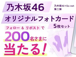 2026年4月30日(木)までのキャンペーン期間内に、公式アカウントをフォローして、期間中にキャンペーン対象ポストをリポストすると、後日抽選で200名に『乃木坂46 オリジナルフォトカード 5枚セット』が当たる、プレゼントキャンペーンとなっています。