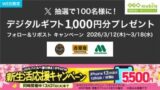 2026年3月21日(土)までのキャンペーン期間内に、公式Xアカウントをフォローして、キャンペーン対象ポストURLからポストをすると、後日抽選で合計3,005名に『Amazonギフト券 100円 ~ 10,000円分』が当たる、プレゼントキャンペーンとなっています。