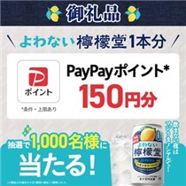 2026年4月19日(日)までのキャンペーン期間内に、公式アカウントをフォローして、キャンペーン対象ポストにハッシュタグ【#飲めない夜もよわない檸檬堂】を付けてコメントを記入して引用ポストすると、後日抽選で1,000名に『PayPayポイント 150円分』が当たる、プレゼントキャンペーンとなっています。