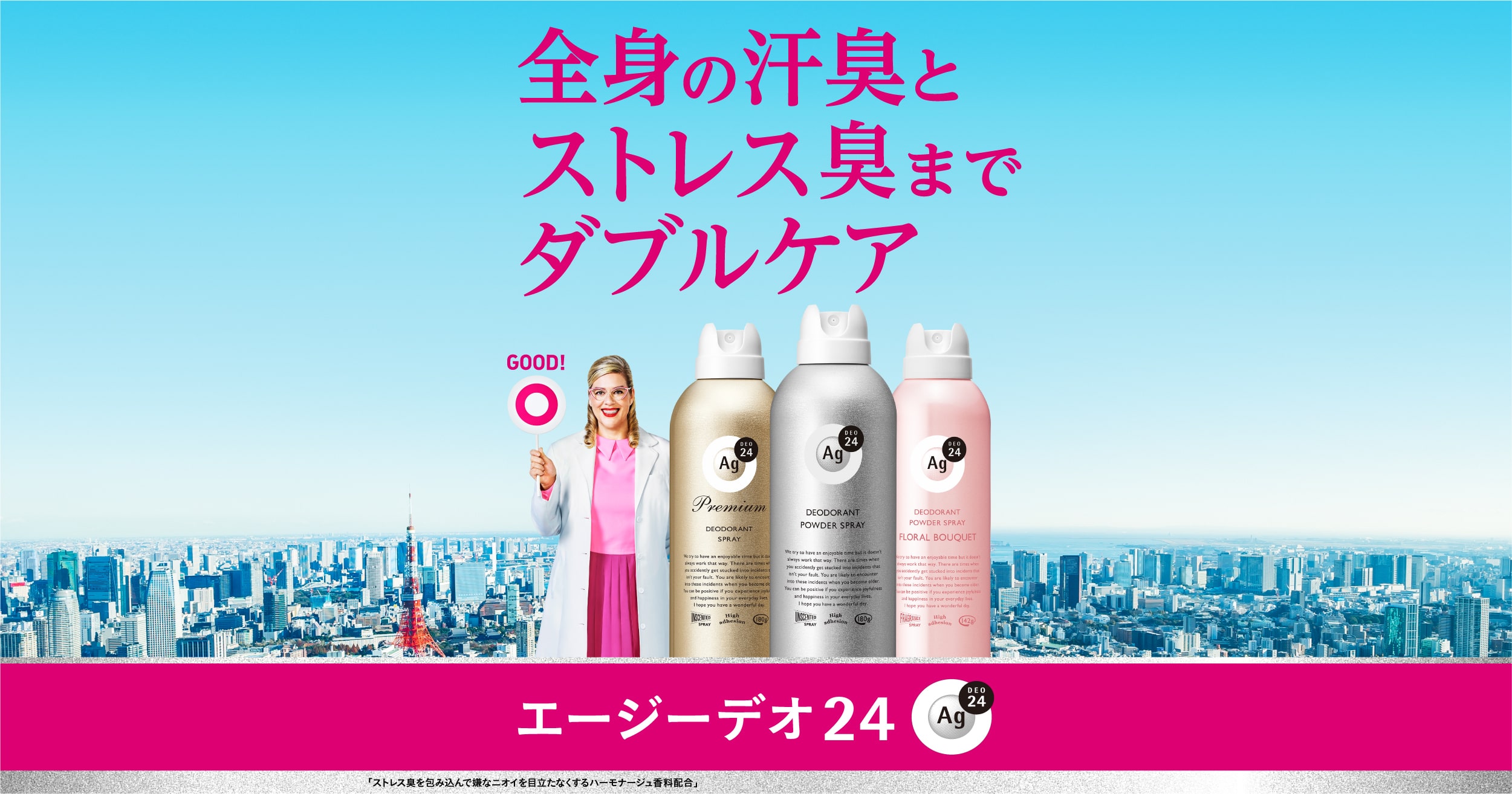 【公式サイト】ニオイ菌を殺菌して、全身の汗臭+ストレス臭までダブルケア!高機能デオドラントで快適さアップグレード。エージデオ24の商品を紹介しています。