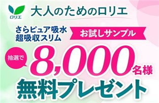 2026年6月4日(木)までのキャンペーン期間内に、LINE友だちに追加をした上でトーク画面のバナーをタップしてアンケートに回答をして応募をすると、後日抽選で8,000名に『ロリエ さらピュア吸水 超吸収スリム サンプル4枚セット』が当たる、プレゼントキャンペーンとなっています。