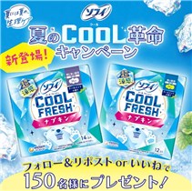 2026年5月15日(金)までの期間中に、公式アカウントをフォローして、キャンペーン期間中に投稿される対象ポストを【リポスト】または【いいね】をすると、後日抽選で150名に『ソフィCOOLナプキンセット』が当たる、プレゼントキャンペーンとなっています。