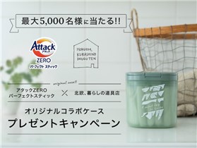 花王の洗濯用洗剤ブランドの【アタック (Attack)】の公式サイトの特設ページで「アタックZEROパーフェクトスティック×北欧、暮らしの道具店オリジナルコラボケースプレゼントキャンペーン」が実施中です。
