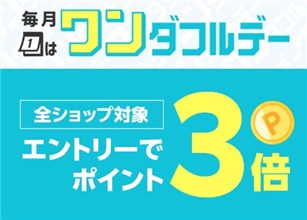 毎月1日は楽天市場のワンダフルデー!エントリー後のお買い物合計金額が3,000円(税込)以上で、全ショップポイント3倍!欲しかったアイテムは、毎月1日にお得にゲットしよう!