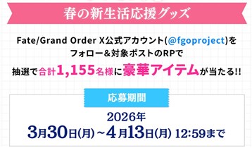 スマートフォン向けのゲームアプリの【Fate/Grand Order】の公式Xアカウントで「春のWプレゼントキャンペーン2026!」が開始しています。